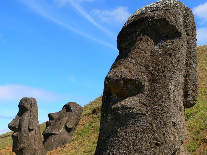 Easter Island is where one will find the 600 giant heads called moai.